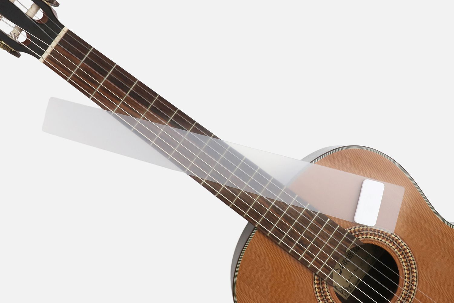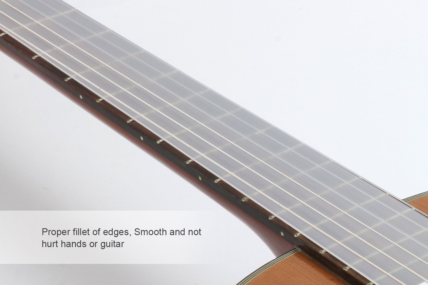 Fretboard protective plate, made of PE, which material has good toughness and is durable (can be bent at will, but not folded). Proper fillet of plate edges, smooth and not hurt hands or guitar.