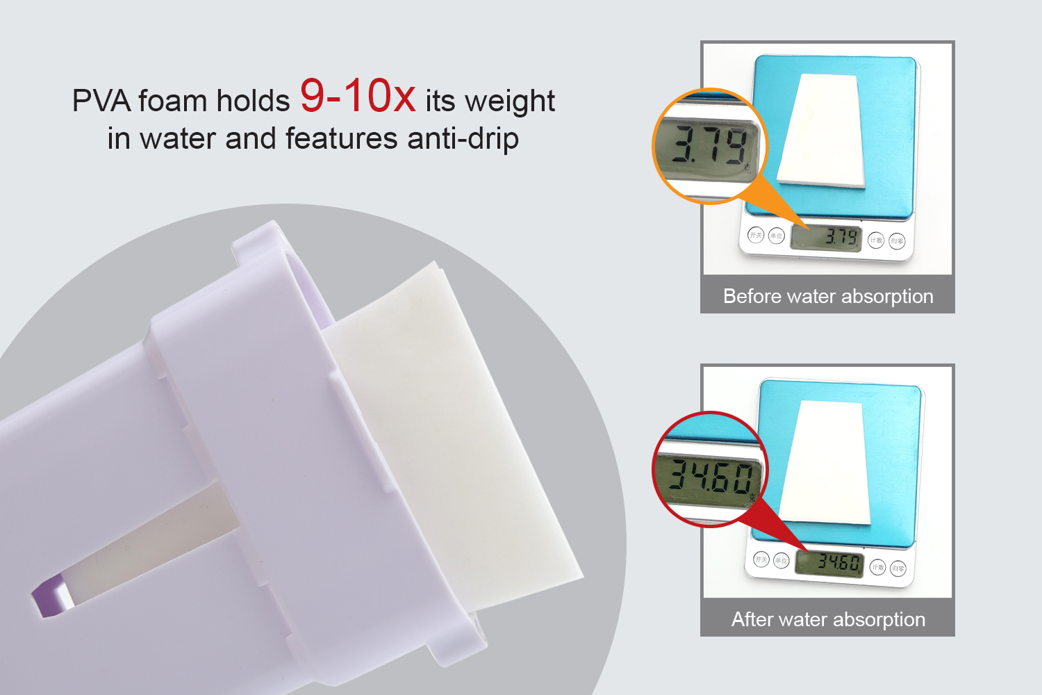 Innovative PVA foam holds 10x its weight in water and features anti-drip, Long-lasting moisture retention and uniform evaporation, support a safe and long humidification circumference.