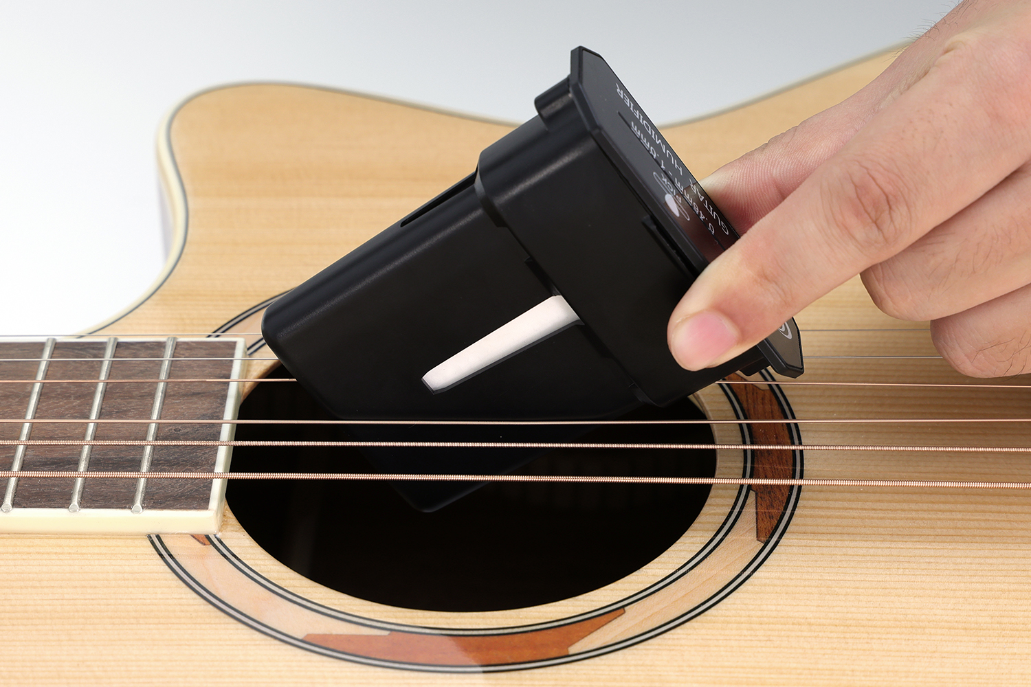Step 2: place it between 3th and 4th strings on the sound hole