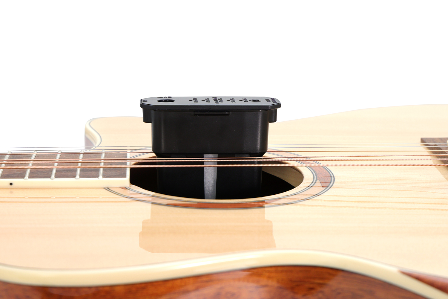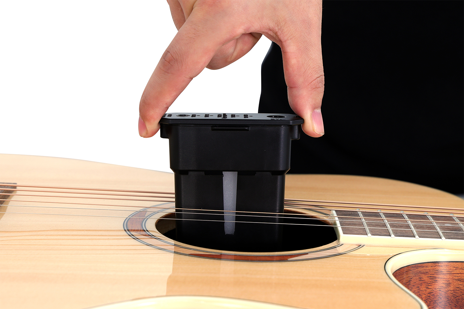 Step 2: place it between 3th and 4th strings on the sound hole
