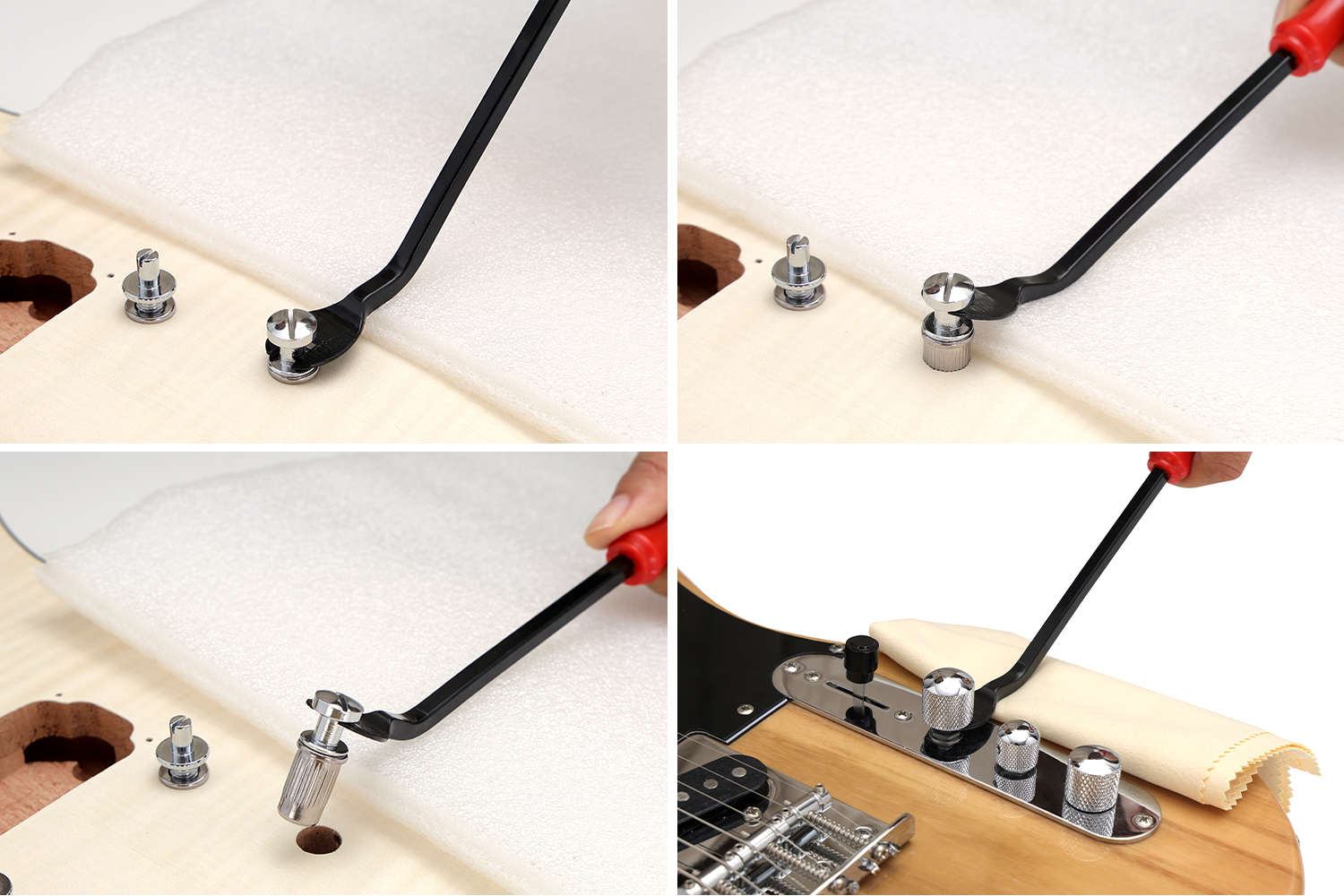 Note: make sure put a strong mat on the point of strength during work, to protect your guitars